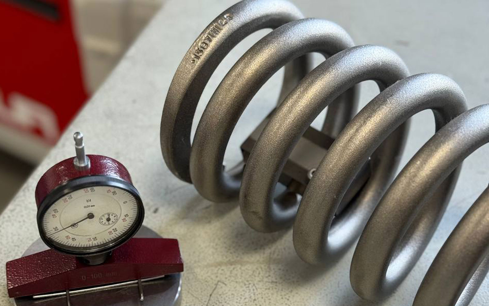 Hardness — the material's resistance to indenter insertion. Modern heat treatment is used in the production of RPC SPRING LLP, which provides stable hardness and an appropriate elastic limit. The control is carried out according to the Brinell TB 5004-03 method on a universal hardness tester in accordance with IS: 1500.